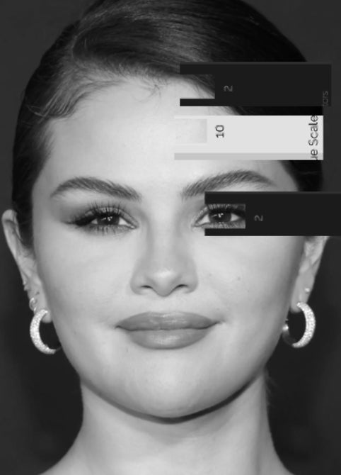 We measure contrast by observing the differences between your features when in grey scale (Black & White) As you see in these images. In colour analysis, we look at the lightness or darkness of your skin compared to your hair and eyes, and whether your colouring has strong or subtle definition.